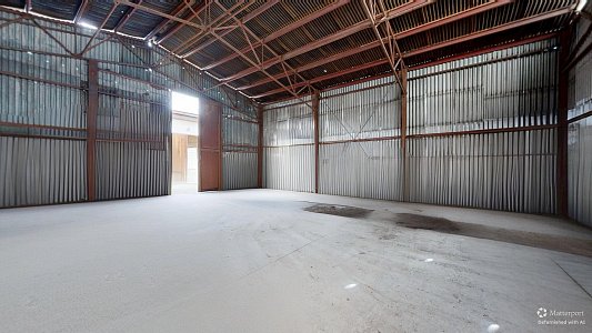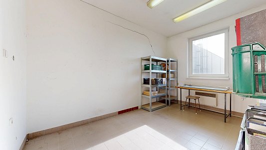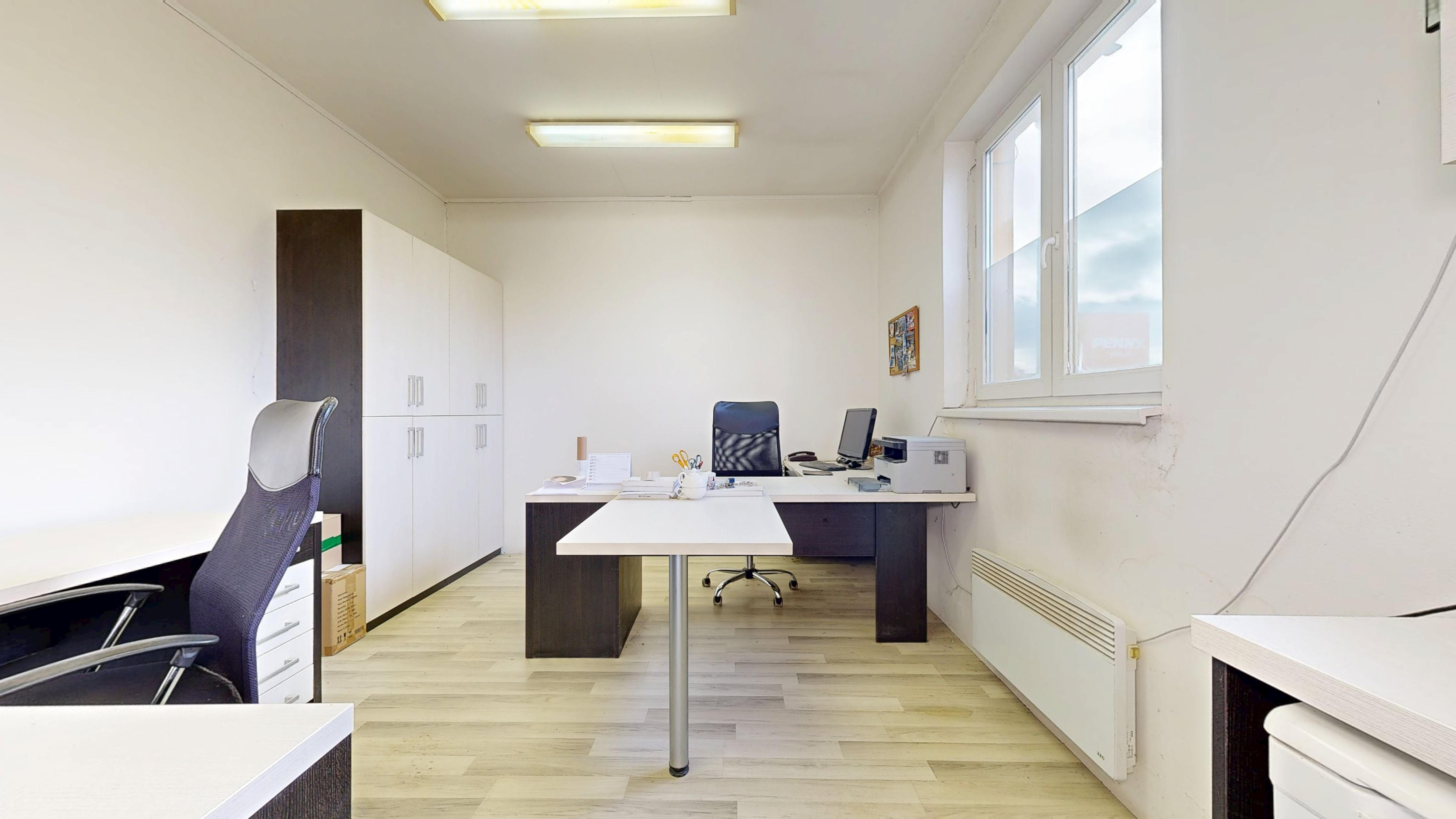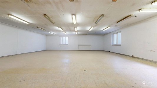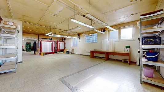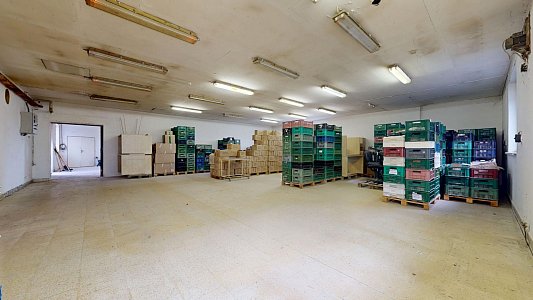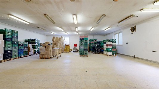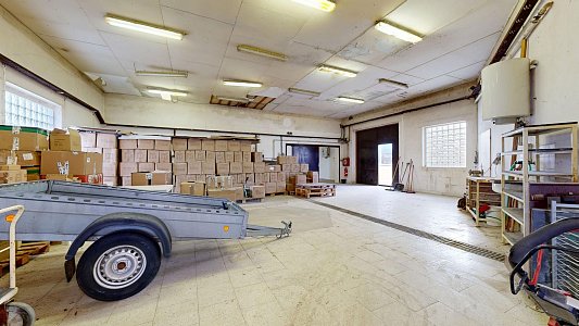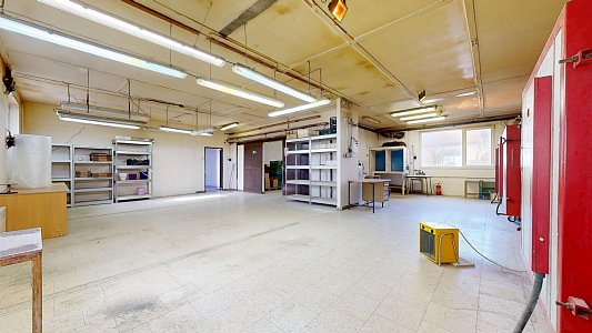 Hlavní budova nabízí tři výrobní haly (130,5 m², 105,1 m² a 138,5 m²), navazující skladové prostory (22,8 m² a 24,4 m²), administrativní zázemí (kancelář 16,5 m²) a sociální část tvořenou kuchyňkou (14,0 m²), šatnou (16,2 m²), dvěma koupelnami (6,6 m² a 5,7 m²), třemi WC a chodbou (12,3 m²). Vedlejší objekt tvoří samostatná hala o výměře 126,4 m² a navazující sklad 30,2 m². Tento prostor je vhodný jako technický sklad, manipulační zázemí nebo oddělená provozní část.