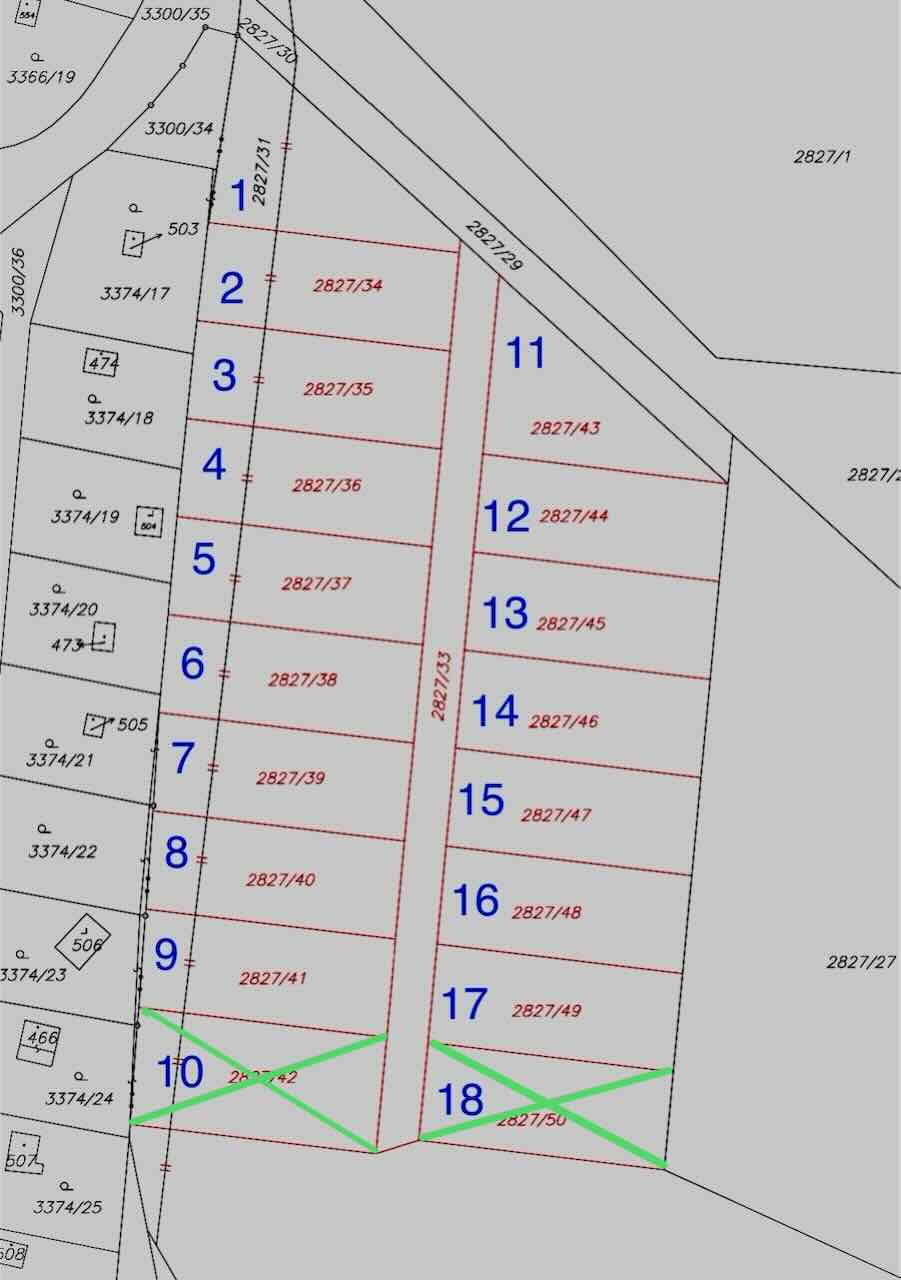 Výměry nově vyměřených zahrádek se pohybují v rozmezí 455 - 766 m2. V případě zájmu je možné koupit dvě (a více) parcel jedním zájemcem. Celkem zde bylo geometrickám plánem vyměřeno 18 zahrádek. Dvě zahrádky (na schématickém nákresu ve forogalerii jsou označeny čísly 10 a 18) již byly prodány zahrádka č. 11 je předběžně rezervována.