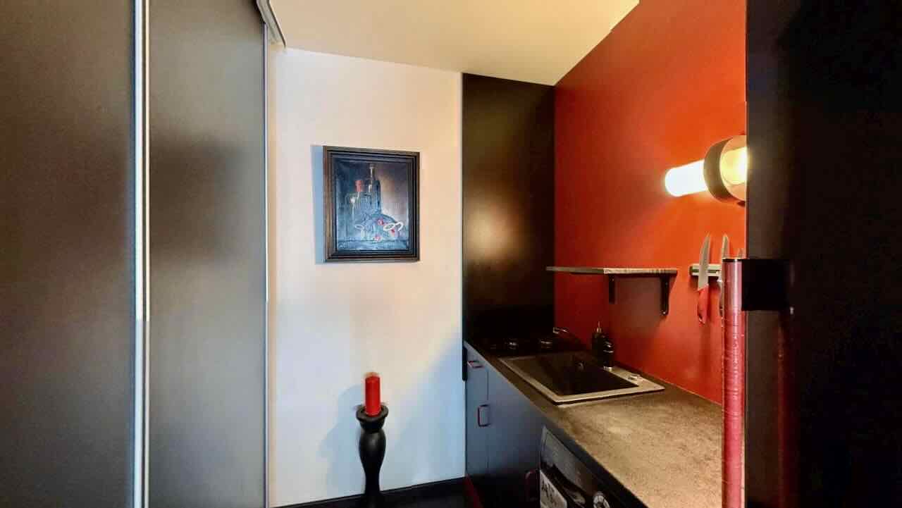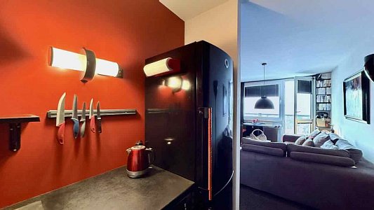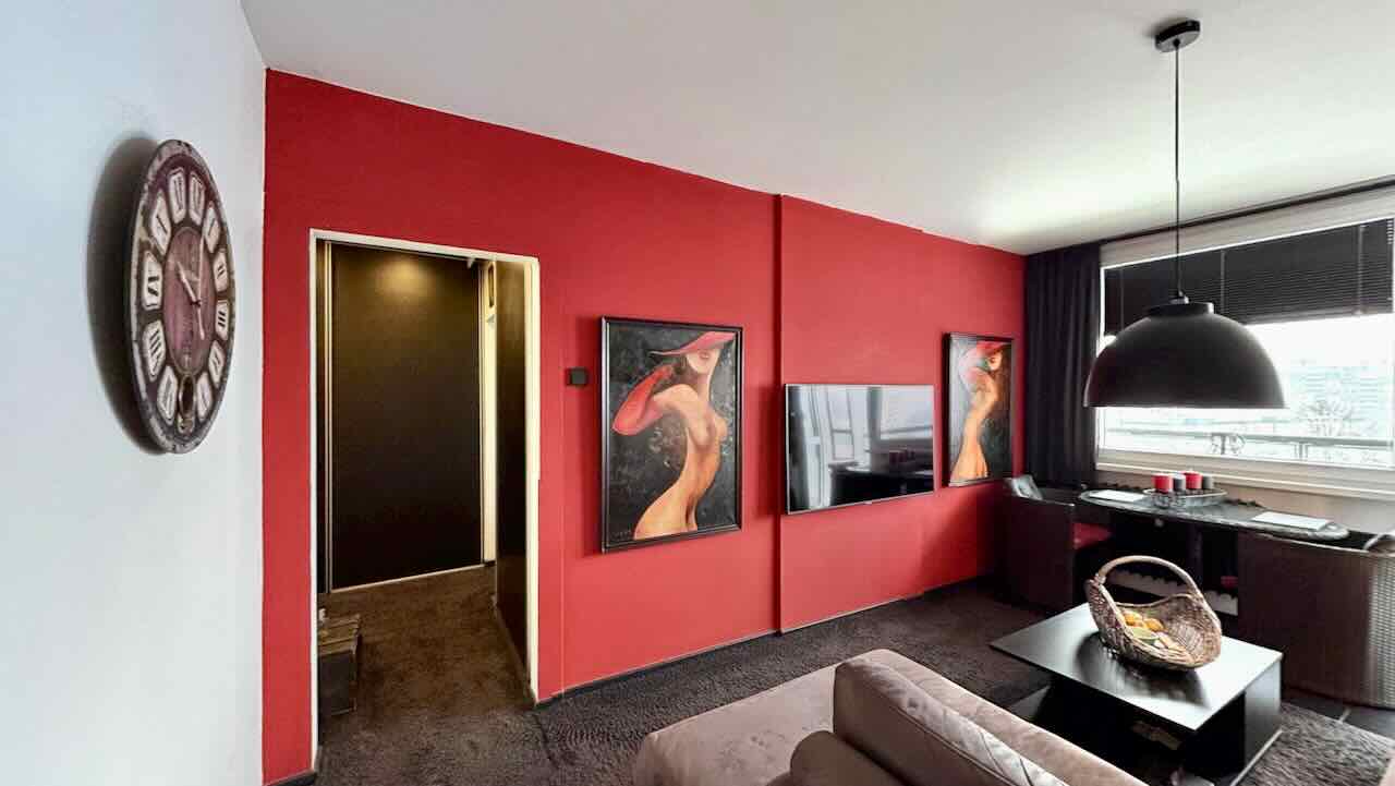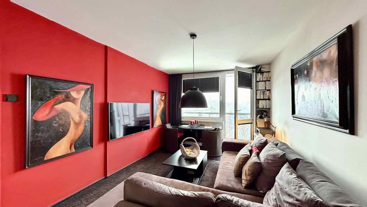 Nabízený byt prošel cca před pěti lety stavebními úpravami: původní umakartové jádro bylo vybouráno a nahrazeno novou zděnou konstrukcí Ytong. Koupelna je vybavena masážním sprchovým koutem, závěsným WC (systém Geberit) a umyvadlem. Nášlapnou vrstvu podlahy tvoří keramická dlažba, stěny jsou opatřeny keramickým (bělninovým) obkladem. Podlahy ostatních místností jsou provedeny jako plovoucí, všechny místnosti bytu jsou opatřeny sádrokartonovými podhledy. Kuchyňský kout je vybaven kuchyňskou linkou, plynovou dvouplotýnkou a prostorem pro automatickou pračku. Vytápění bytu i ohřev teplé vody jsou řešeny centrálně, plyn je využíván pouze pro vaření.